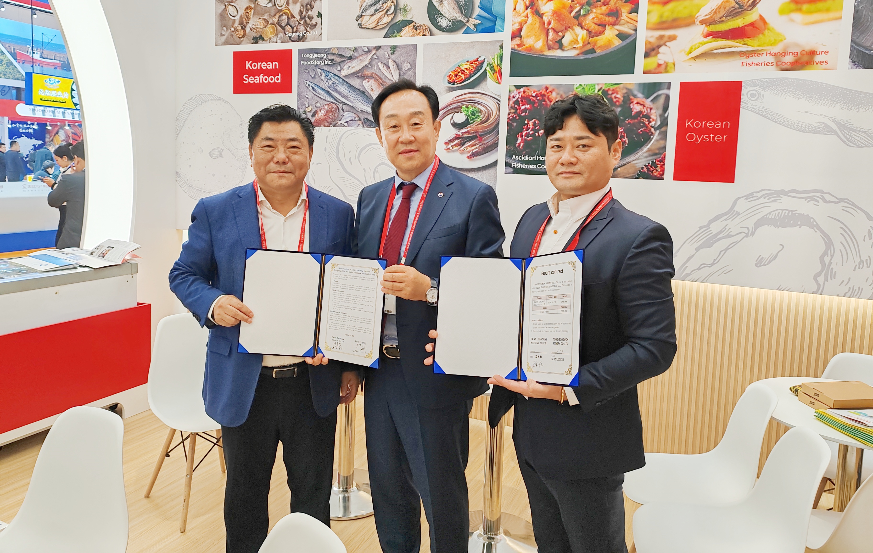 27屆青島漁博會,天正與韓國統營市長簽約出口協議